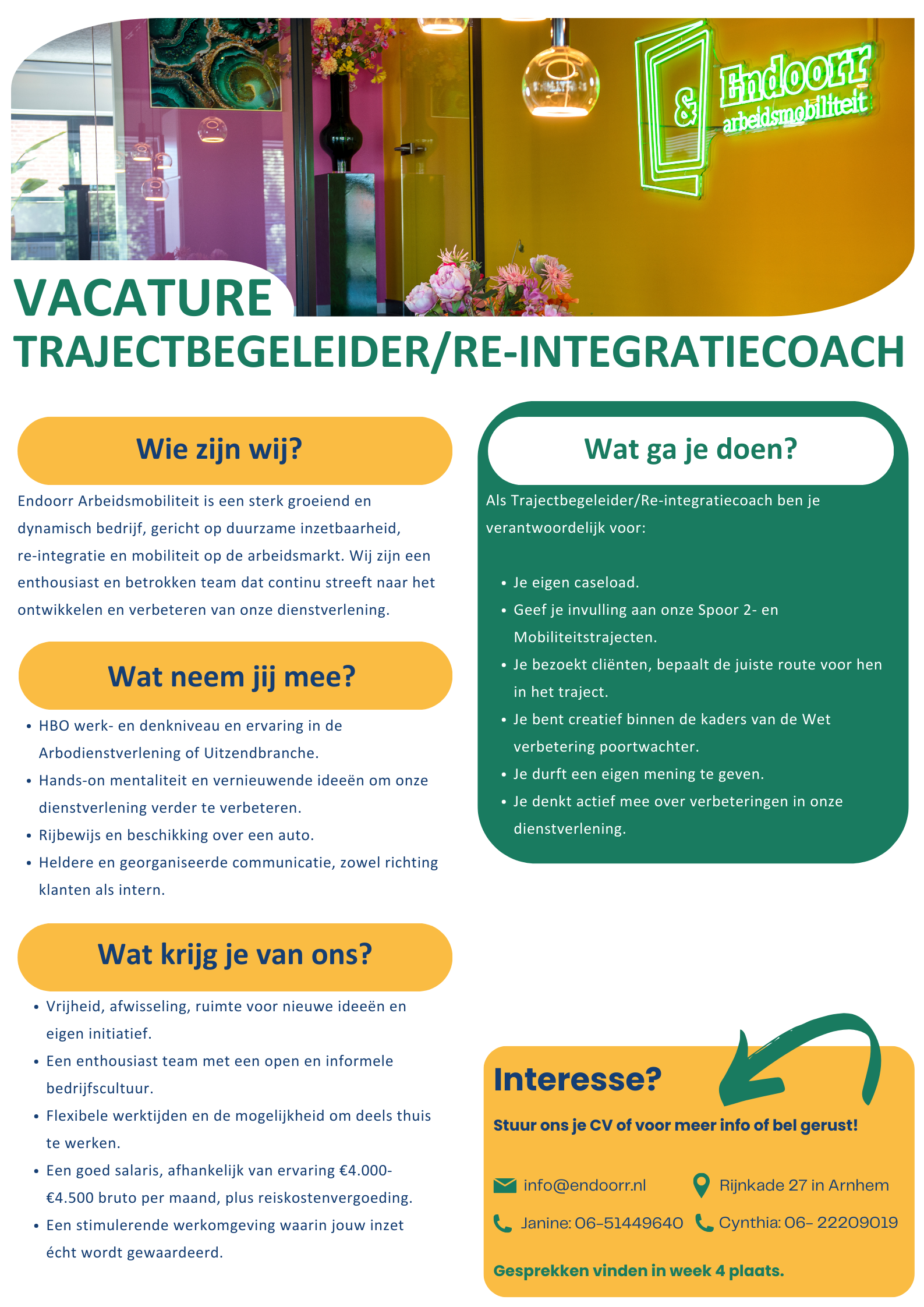 Bij Endoorr werken professionals die snappen dat resultaat begint bij oprechte aandacht én doorpakken. Met onze voeten in de klei en onze blik op de toekomst zetten we ons dagelijks in voor duurzame oplossingen. Wij zijn doeners met lef. Mensen-mensen die eerlijk durven zijn, duidelijke doelen stellen en meebewegen waar het moet, maar koers houden waar het kan. Met jarenlange ervaring in coaching en re-integratie, een flinke dosis realisme en enthousiasme, maken wij samen het verschil.